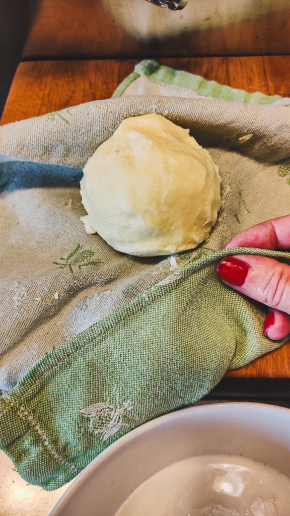 Per eliminare il resto del latticello, dal burro che si è formato ho utilizzato lo strofinaccio