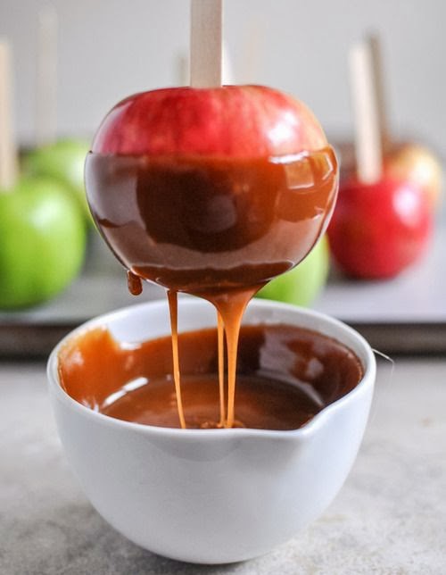 Autunno tempo della raccolta delle mele, mille sono le ricette con le mele, ma le Caramel apples sono le mie preferite, ecco alcune immagini golose per ispirarsi nelle decorazioni.
