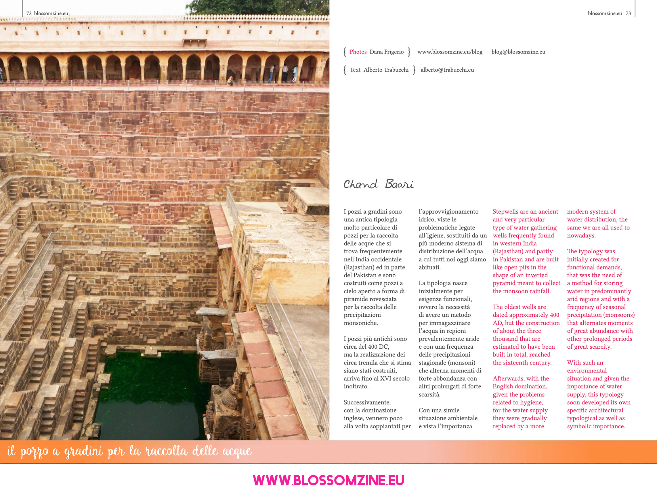 “I pozzi a gradini sono una antica tipologia molto particolare di pozzi per la raccolta delle acque che si trova frequentemente nell’India occidentale (Rajasthan) ed in parte del Pakistan e sono costruiti come pozzi a cielo aperto a forma di piramide rovesciata per la raccolta delle precipitazioni monsoniche.