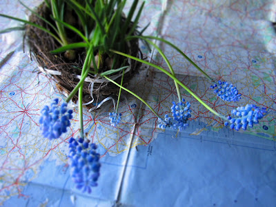 contenitore per i nostri fiorellini. Così facendo abbiamo creato questo nido per gli uccellini, che adesso ospita i piccoli bulbi di Muscari dai fiorellini blu, violetto delicatamente profumati.