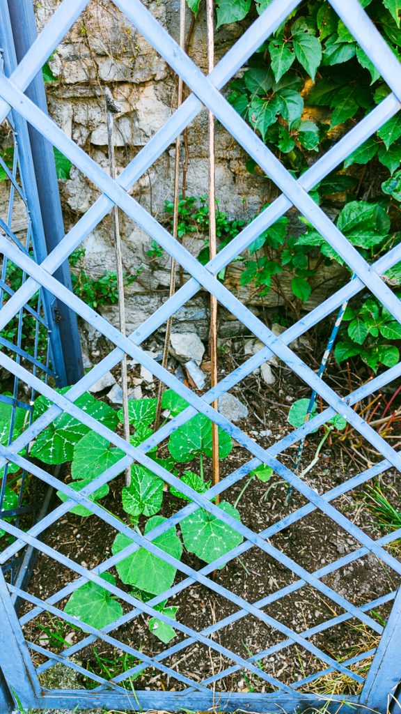 Quindi ho sfruttato un vecchio treillage in ferro che avevo e ho seminato le zucche in maggio, ma le lumache se le sono mangiate tutte!