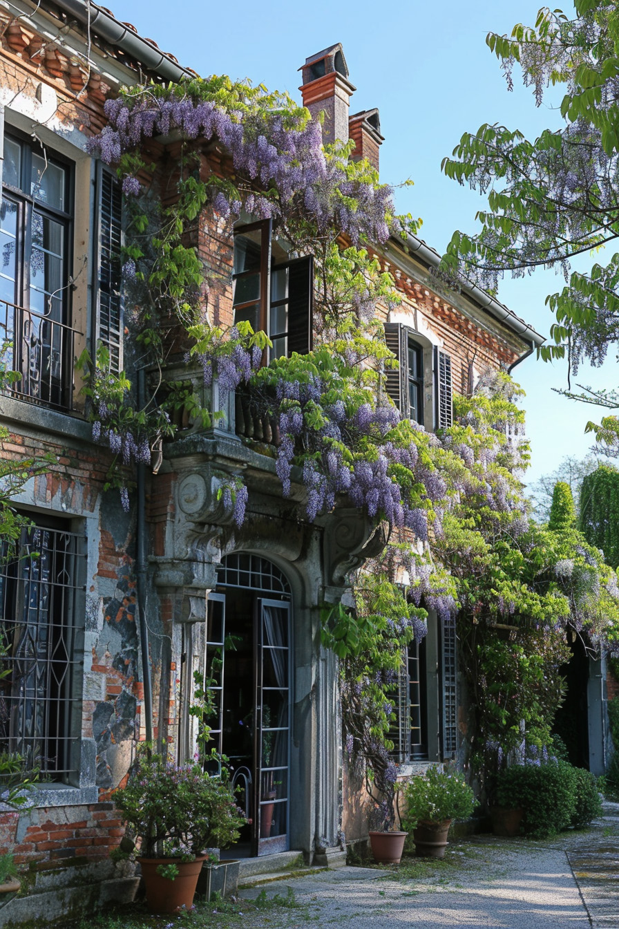 Anche se la tua casa con il glicine deve apparire naturale e spontanea, ciò non significa che non sono state fatte delle valutazioni sulla progettazione.
