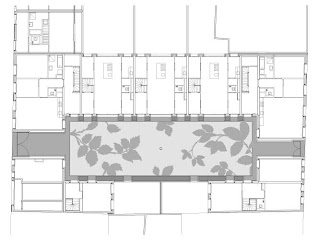 L’architetto Anouk Vogel ha voluto che il cortile fosse interamente pavimentato con un mosaico raffigurante petali di rosa gigante.